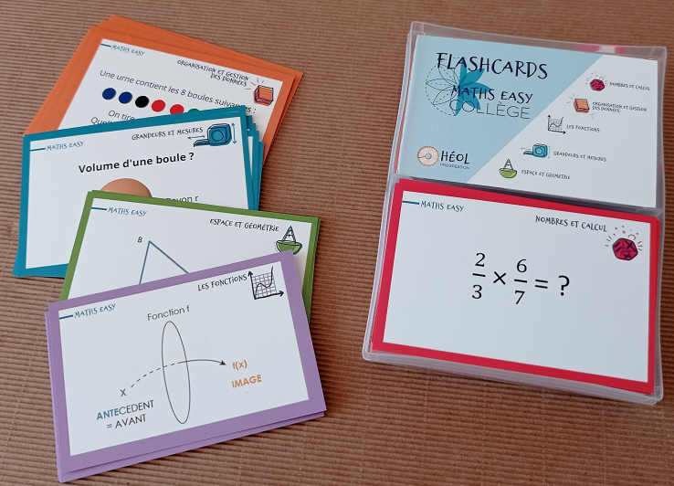 Enfin, vous recevez (dans le point relais le plus proche) une boite de 150 flashcards MATHS EASY Collège, classées par thème et par couleur !