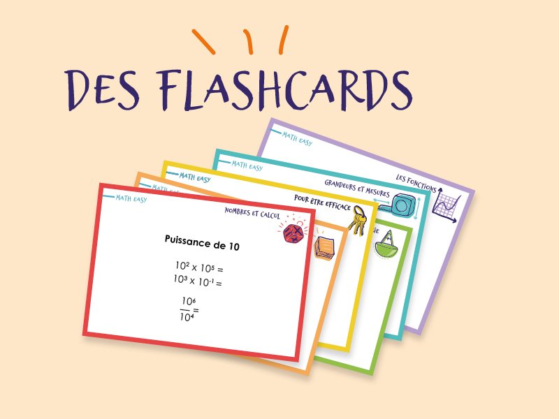 - Un jeu de 150 flashcards avec l'essentiel de ce qu'il faut savoir en maths au collège !